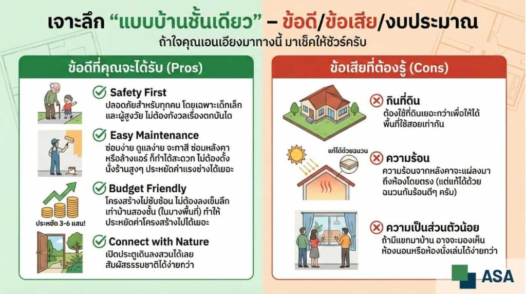 เจาะลึก “แบบบ้านชั้นเดียว” – ข้อดี/ข้อเสีย/งบประมาณ